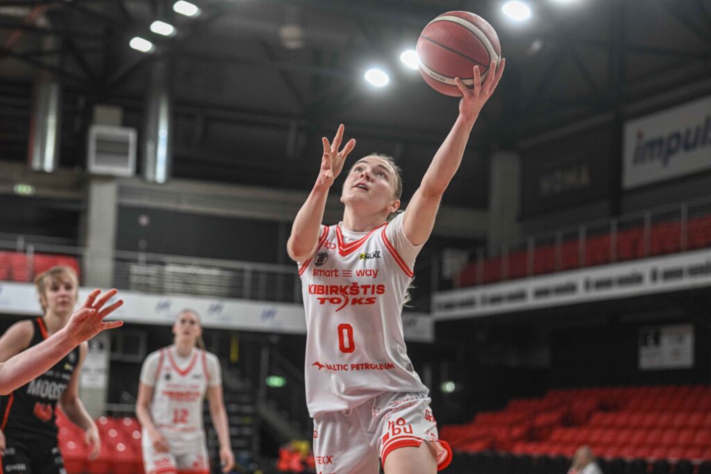 Išretėjusi Vilniaus „Kibirkštis-TOKS“ – viena koja „Smart Way MLKL“ A diviziono finale. Viliaus Stanišausko merginos savo aikštėje 103:78 (33:20, 25:14, 24:19, 21:25) įveikė Klaipėdos LCC tarptautinį universitetą. Lietuvos čempionės pusfinalio serijoje iki dviejų pergalių išsiveržė į priekį 1-0. Sostinės ekipa seriją uždaryti turės šansą balandžio 12 d. uostamiestyje. „Kibirkščiai-TOKS“ šioje akistatoje nepadėjo kapitonė Giedrė Labuckienė, Kamilė Nacickaitė-Van